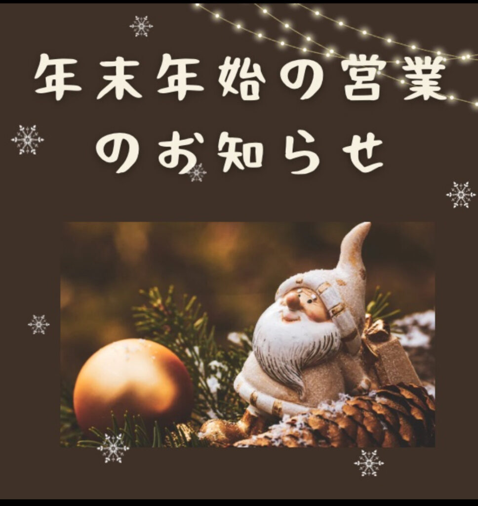 年末年始の営業日のおしらせです。